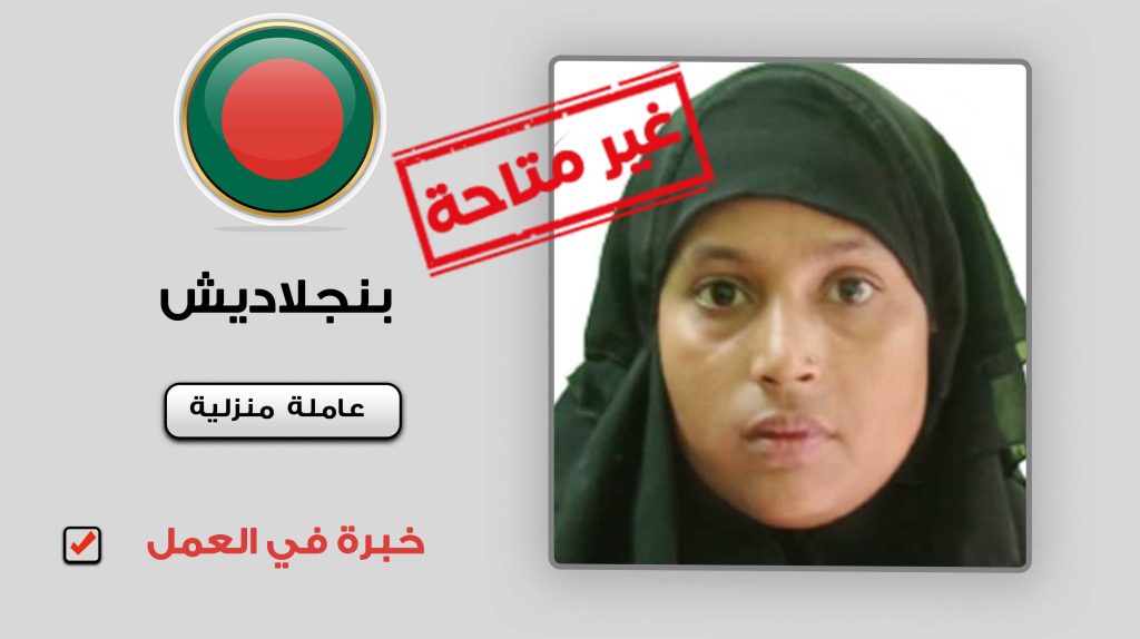 إسمي السيدة حبيبة كيتيرا غير متزوجة من بنجلاديش و عمري 28 سنة و لدي خبرة في العمل بمنطقة الخليج و أجيد بعض الجمل البسيطة العربية و الإنجليزية و اللغة المحلية و مستعدة للعمل كعاملة منزلية راسلني الآن