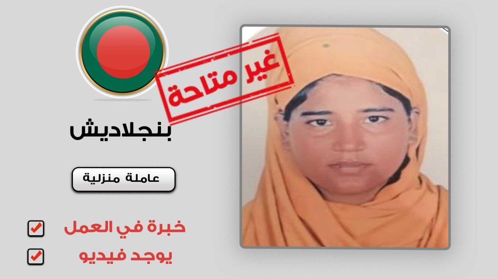 إسمي نظمة بيجوم متزوجة من بنجلاديش و عمري 35 سنة و لدي خبرة في العمل بمنطقة الخليج و أجيد بعض الجمل البسيطة العربية و الإنجليزية و اللغة المحلية و مستعدة للعمل كعاملة منزلية راسلني الآن