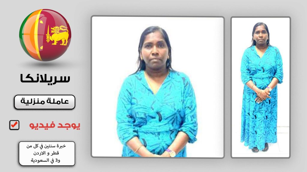 إسمي أنولاواثي من سريلانكا و عمري 52 سنة ولدي خبرة في العمل خبرة سنتين في السعودية وأجيد بعض الجمل البسيطة العربية و الإنجليزية و اللغة المحلية و مستعدة للعمل كعاملة منزلية راسلني الآن