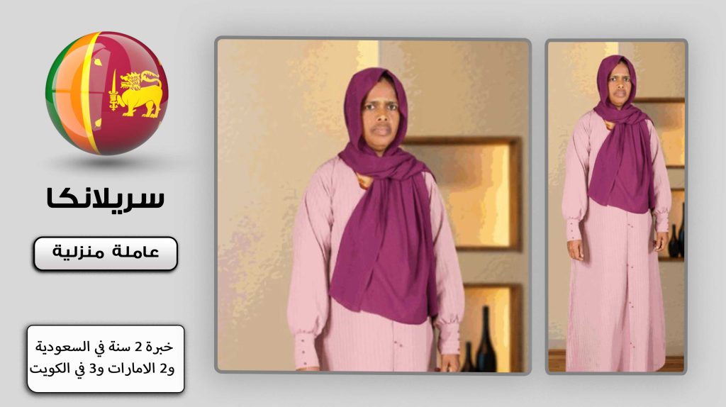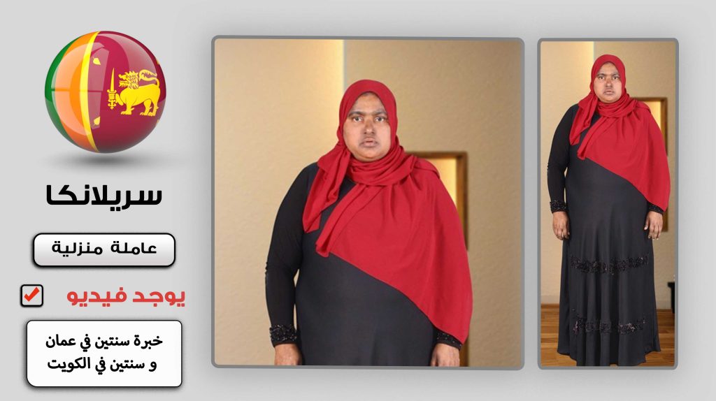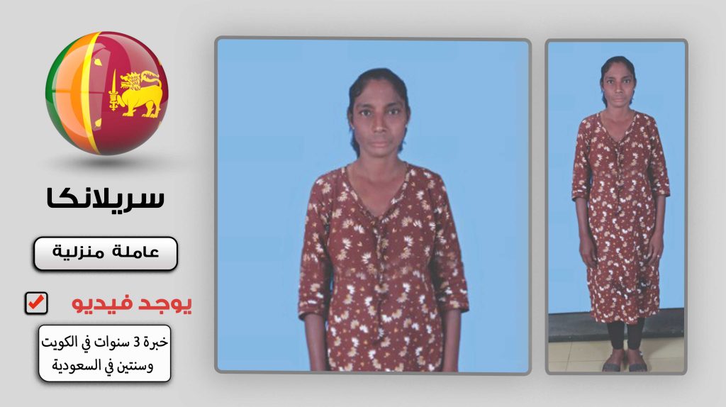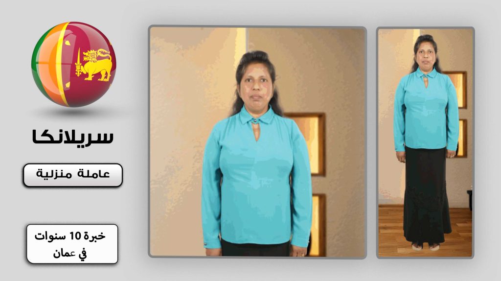 إسمي ويراسيكارا ناديشا تشاثورانجاني متزوجة من سريلانكا و عمري 39 سنة و لدي خبرة سنتين في عمان وأجيد بعض الجمل البسيطة العربية و الإنجليزية و اللغة المحلية و مستعدة للعمل كعاملة منزلية راسلني الآن